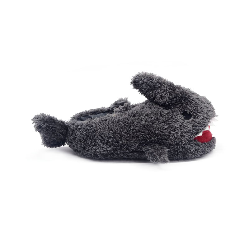 Mørkegrå Scary Shark Barnetøfler. Denne tøffelen er inspirert av det tegnede haibildet og kombinert med det varme materialet av arktisk fløyel for å gi barna en komfortabel og interessant vinteropplevelse.